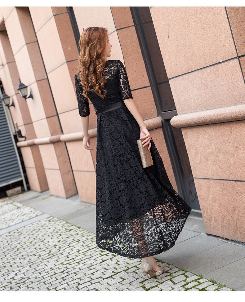 ダイヤモンドネック☆長袖ブラックロングパーティードレス