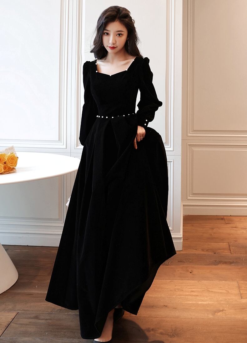 異素材組み合わせ☆エレガントシースルーレース黒色ロングドレス