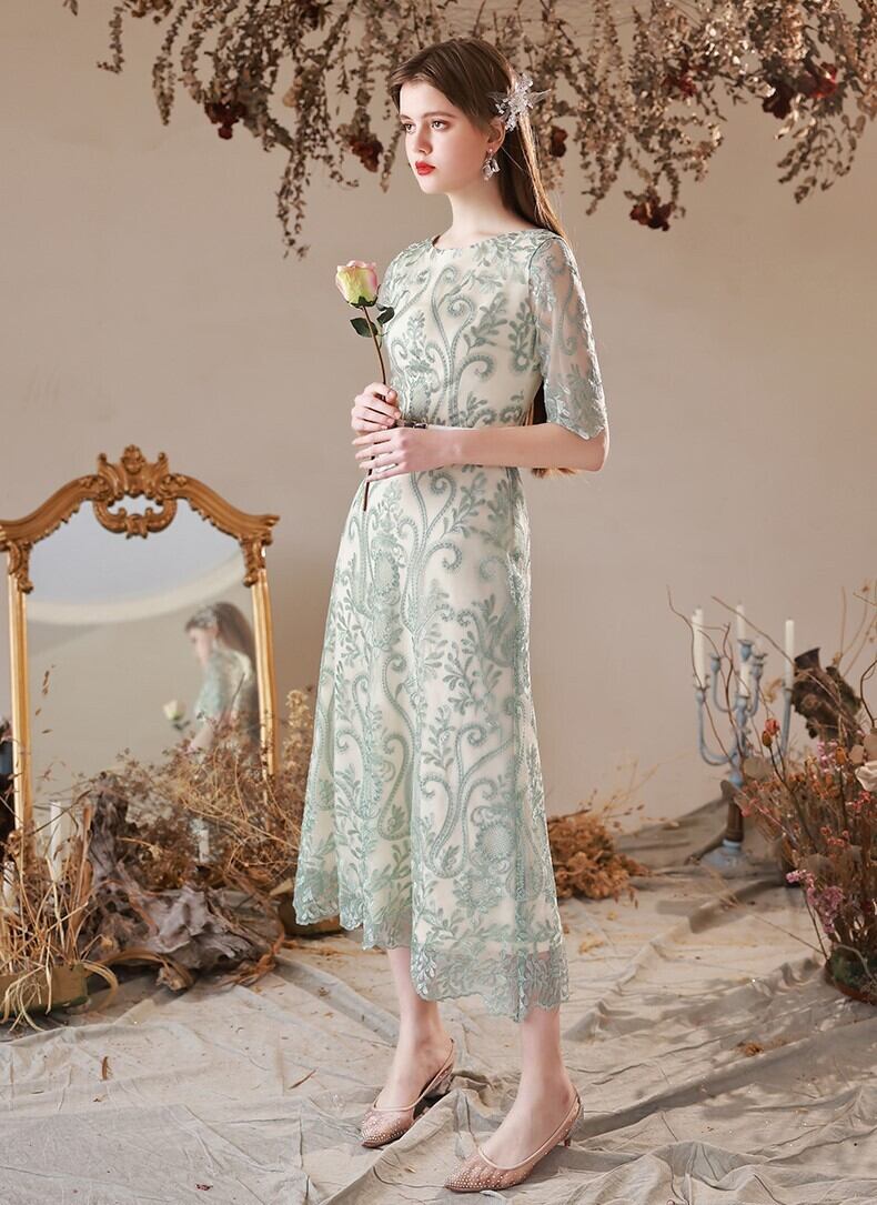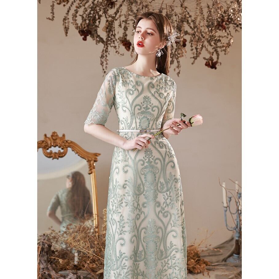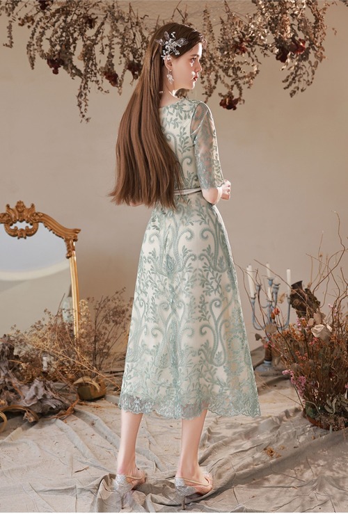 パーティードレス 5分袖 ミントグリーン ミディ丈ワンピース ME027 | 中国・韓国の輸入ドレス専門店『chu.chu(シュシュ)』